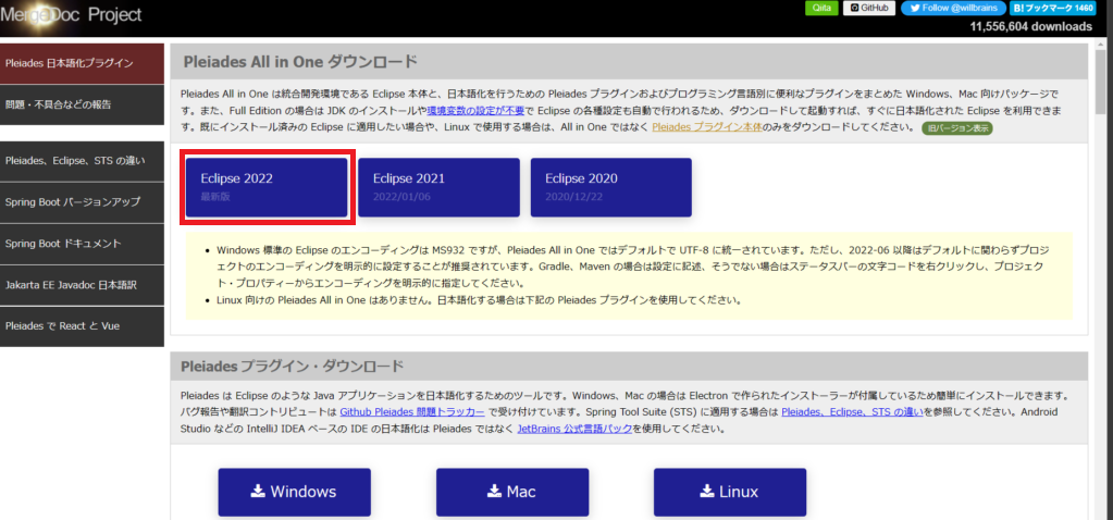 統合開発環境 Eclipse 日本語化プロジェクト – Pleiades (osdn.jp)