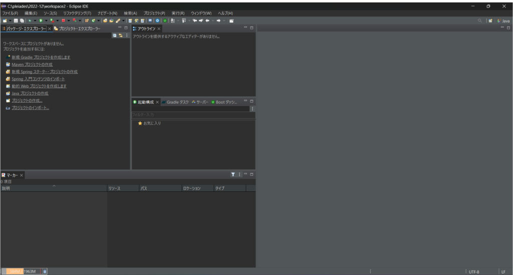 起動すると以下のような画面が表示されるはずです(日本語化は別途調べて対応してください)