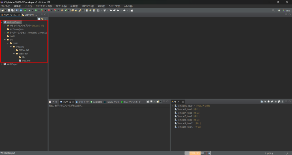 まだJavaの記載はありませんが、今回は取り敢えずJSPを表示することを目指します。