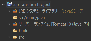 今回は説明が長くなりそうなので、最後のほうで説明します。取り敢えず、どんどんつくっていくところから。いつも通り動的Webプロジェクト「JspTransitionProject」を作成してください。