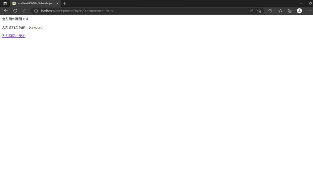 これでJSPで入力した値をJavaを通して別のJSPで表示することができましたね。